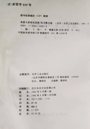 1995年化学工业出版社出版的图书《微量元素研究进展》是1995年化学工业出版社出版的图书,作者是张月霞。